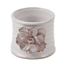 Maceta de Cerámica Azul Marino con Decoración de Flores en 3D, Maceta Pequeña para Plantas Suculentas para Decoración del Hogar