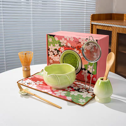 Juego de Té Matcha Japonés con Chawan en Forma de Loto, Chasen de Bambú (Cien Puntas), Kit de Ceremonia de Matcha de Cerámica con Degradado Verde