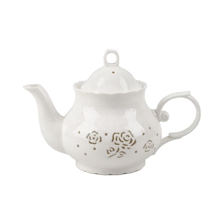 Tetera de Porcelana China Linglong en Oferta - Tetera de Cerámica Blanca con Diseño de Rosa Hueca de 880 ml para el Hogar y Regalos